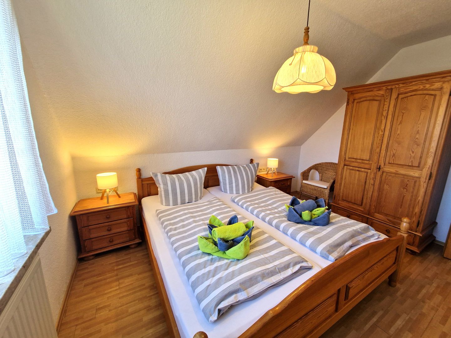 Weiter befinden sich in der Wohnung 2 Schlafzimmer, eins mit einem Doppelbett und ein weiteres mit 2 Einzelbetten.
