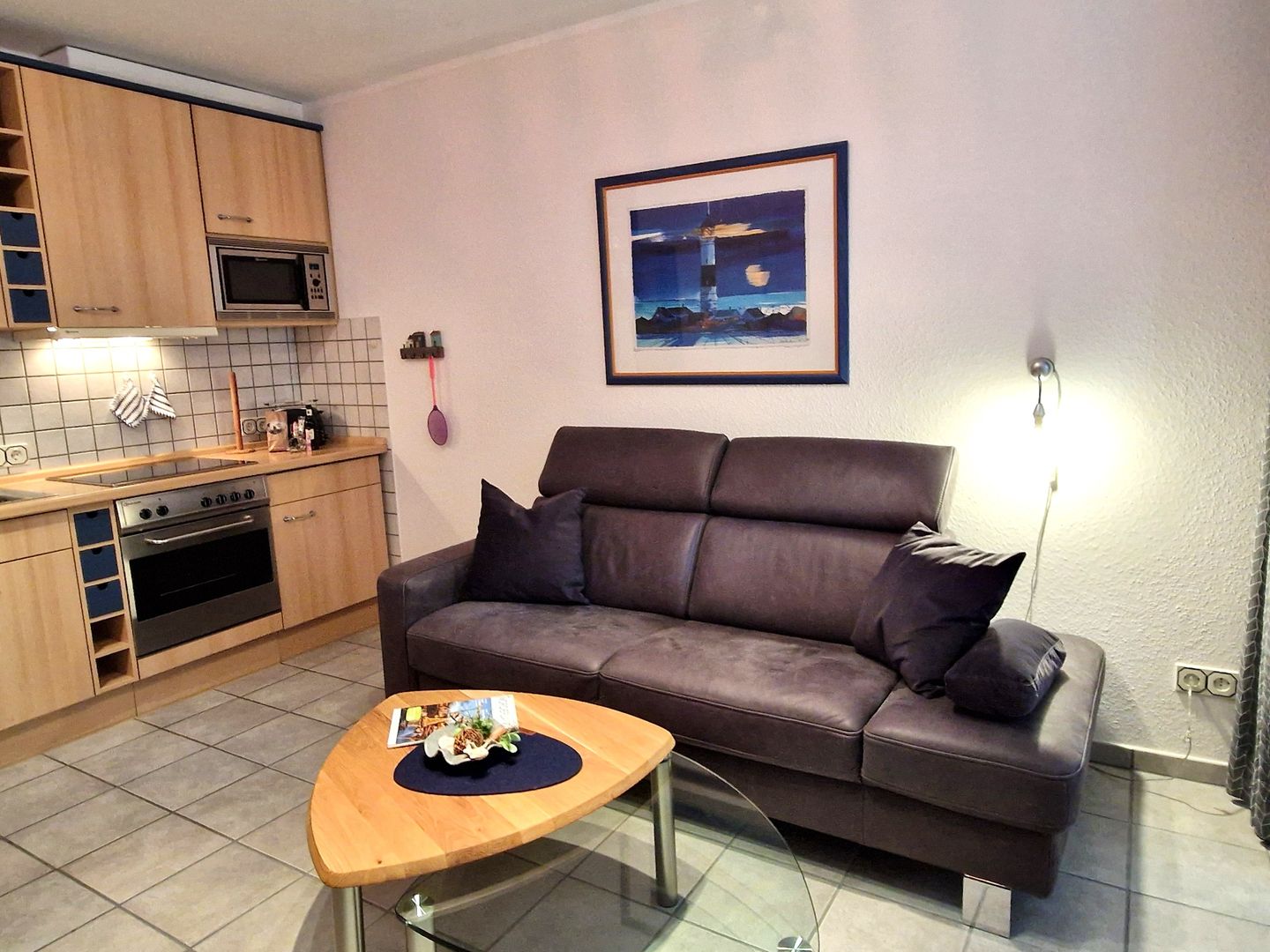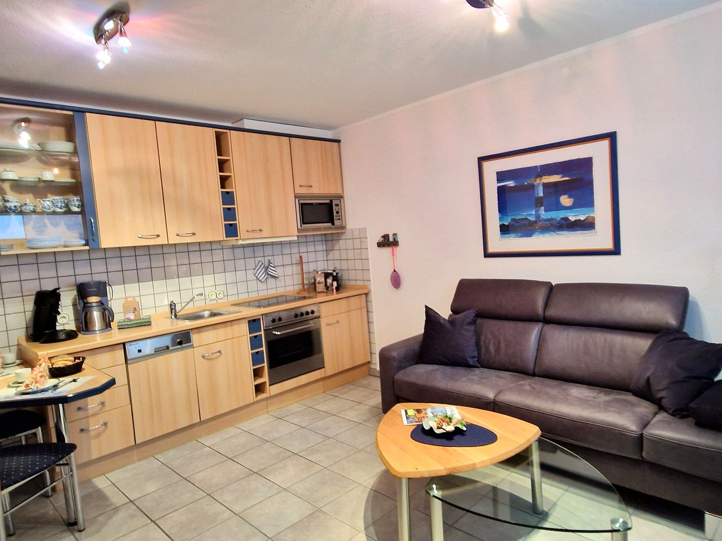 Die Wohnung Krabbenkoje befindet sich in direkter Deichlage im Erdgschoss einer Apartmentanlage.