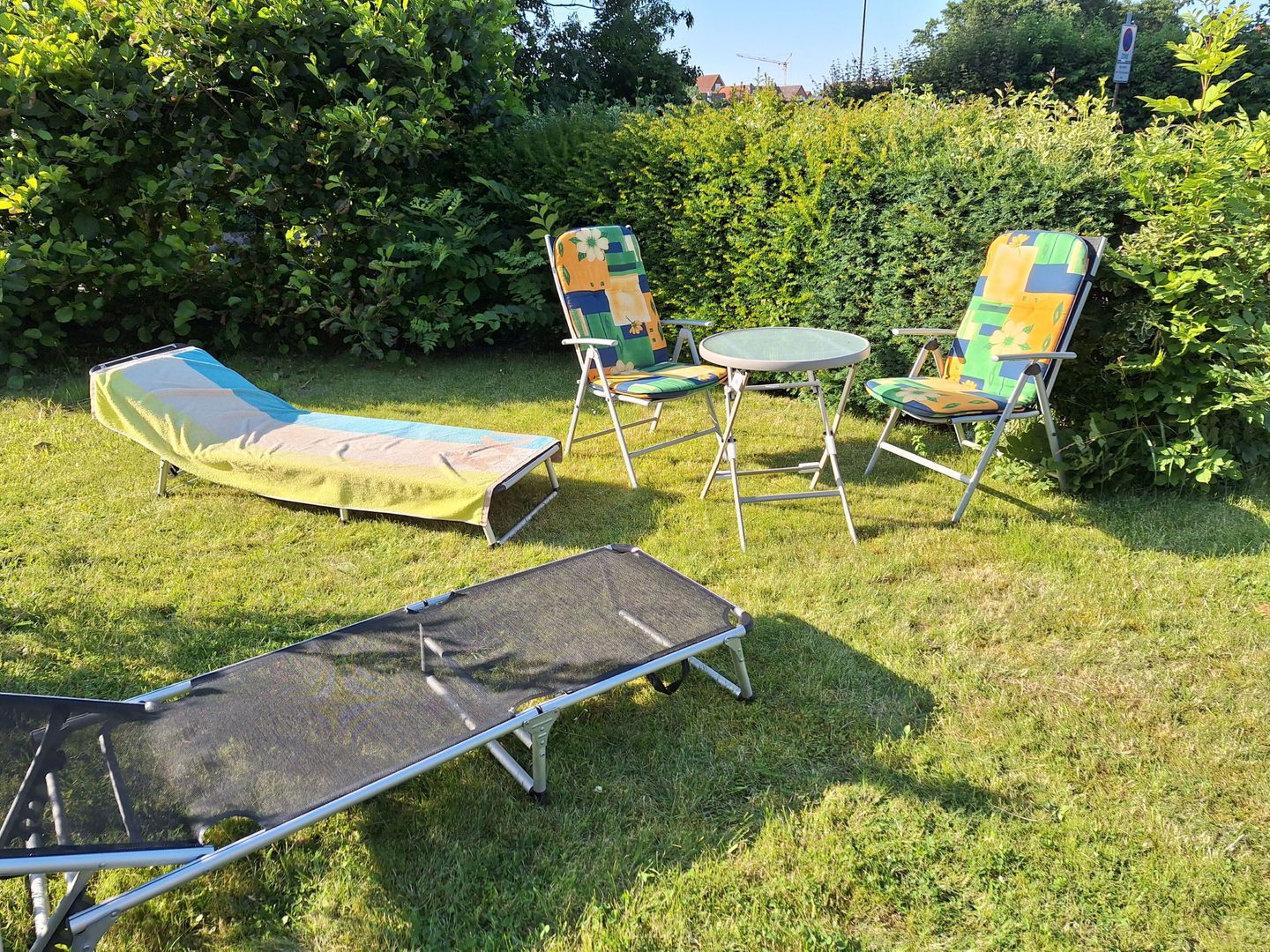 Im eigenen Garten vor dem Haus können Sie auf Gartenstühlen und Sonnenliegen Ihren Urlaub genießen.